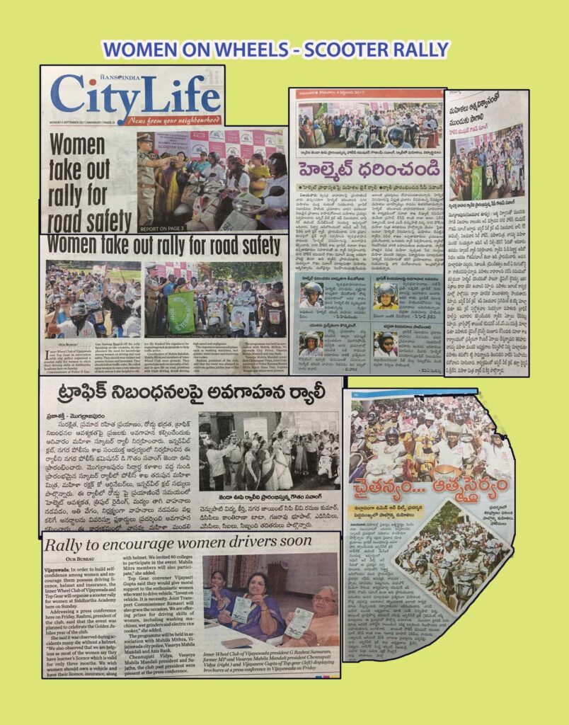 To create awareness on traffic rules, Inner Wheel Club of Vijayawada & Top gear events in association with Vijayawada City Police, Vasvya Mahila Mandali, & Axis Bank organized Women on Wheels, Scooter Rally on Sunday 3rd September 2017 at 10am in Siddartha Academy.