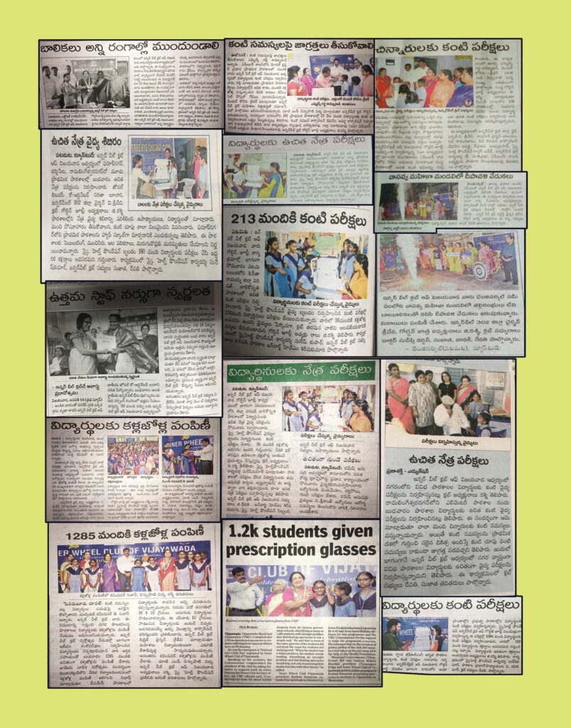 INNER WHEEL CLUB OF VIJAYAWADA completed Mega EYE CHECKUP CAMPS in 50 schools and to around 10368 students. Distributed  1285 spectacles which were sponsored by our District Collector Sri Lakshmi Kantham..