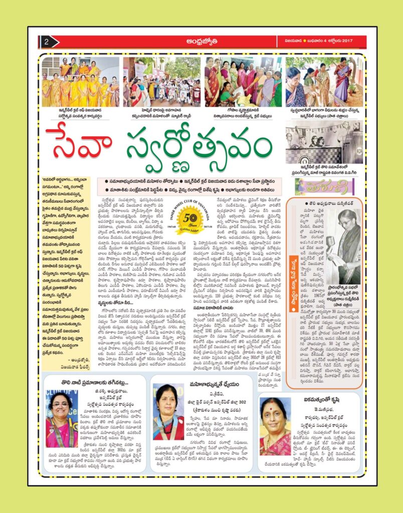 A FULL PAGE ARTICLE RELATING TO GOLDEN JUBILEE CELEBRATIONS OF INNER WHEELCLUB OF VIJAYAWADA  WAS PUBLISHED IN  LOCAL NEWS PAPER ANDHRA JYOTHI.