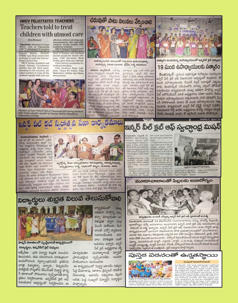 Members of Inner Wheel Club of Vijayawada Surveyed 21 Government schools for Nation Builder Award. Twenty one outstanding teachers were selected and felicitated.