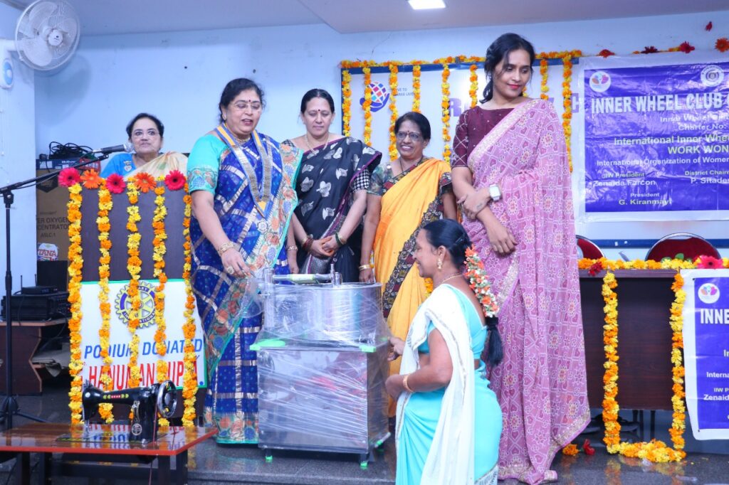 On July 4, 2022, the day of the installation ceremony, IWC Vijayawada provided a wet grinder costing Rs. 6,500 and a sewing machine worth Rs. 6,000 to needy women under the Women Empowerment programme for their livelihood.
